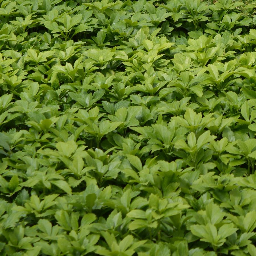 This reliable groundcover bears waxy deep green leaves on compact stems that do not trail like the species. Spreads readily by underground stems. Very neat and uniform growth habit.