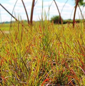 This upright grass shimmers with a mauve cast on the silvery-blue blades. The narrow leaves acquire purple highlights as the season advances. Tolerant of the heat and dry conditions.